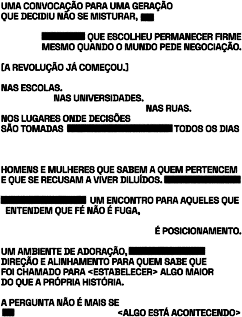 Não existe meia entrada para este evento. A Associação Movimento Dunamis esclarece que não se enquadra na Lei Federal nº 12.933/2013 (Lei da Meia Entrada), pois promove cultos de ministração religiosa e conferências de cunho religioso.